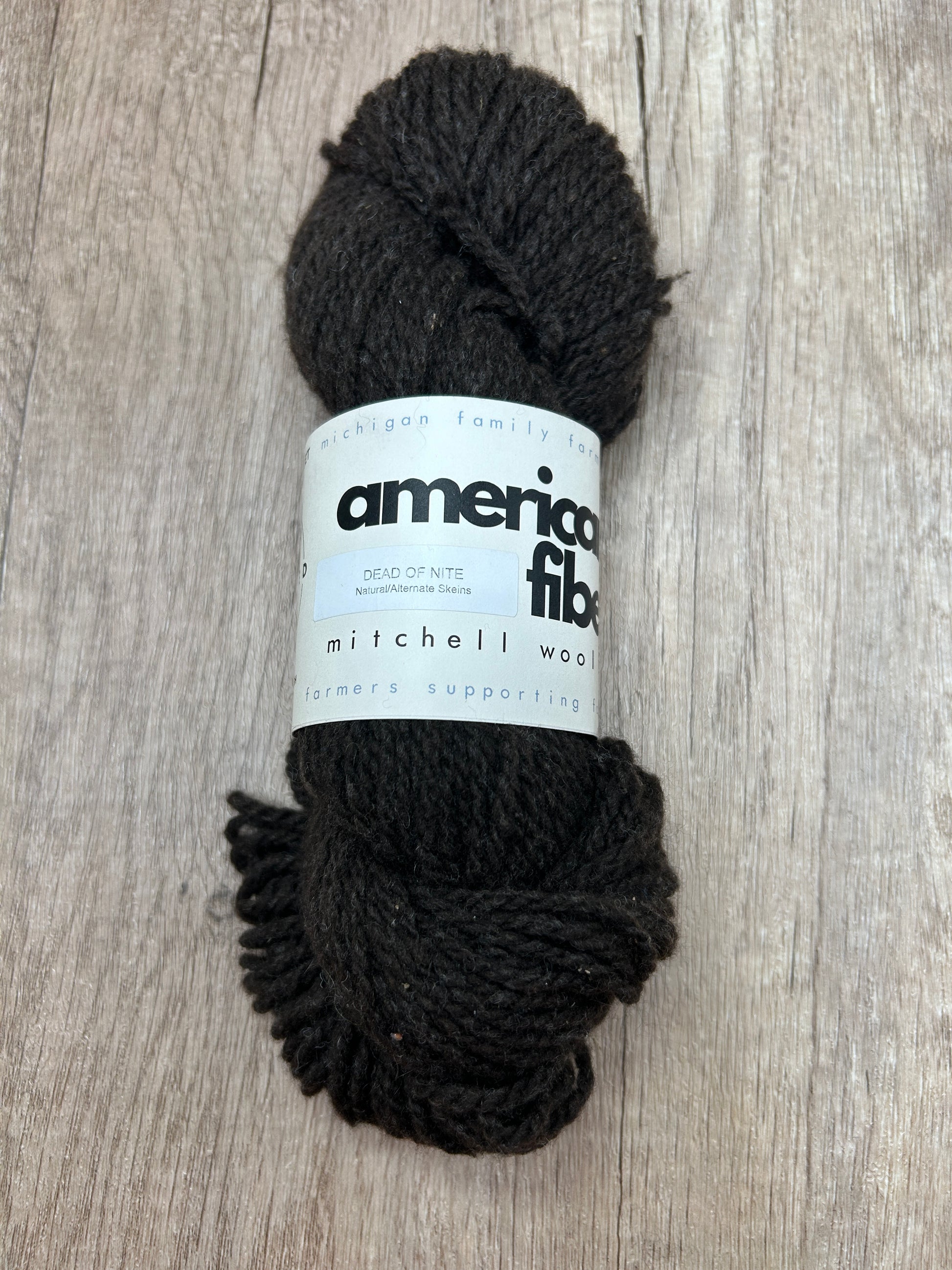 This Michigan sourced wool is a dream. The 2-ply worsted weight yarn is all natural. The rich deep brown, almost black comes from the sheep's natural color. In keeping with Mitchell Wools moto, "keeping American wool local and always natural".