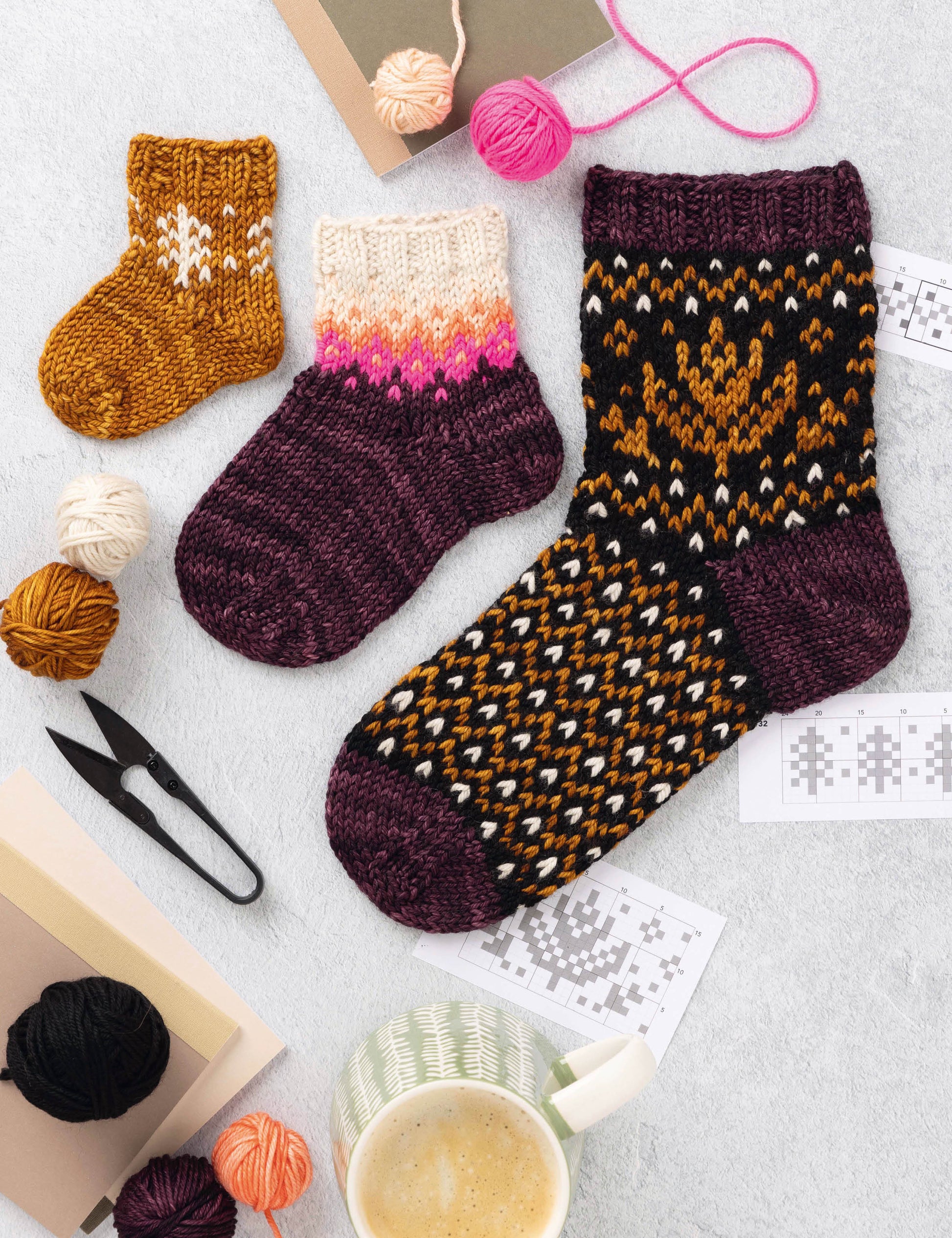 The patterns only combine two colors on each row so it's suitable for beginners to colorwork and because it's done on a small scale it's a great way for absolute beginners to try their hand at colorwork, but the large selection of patterns and designs means that more advanced knitters will have plenty to inspire them.