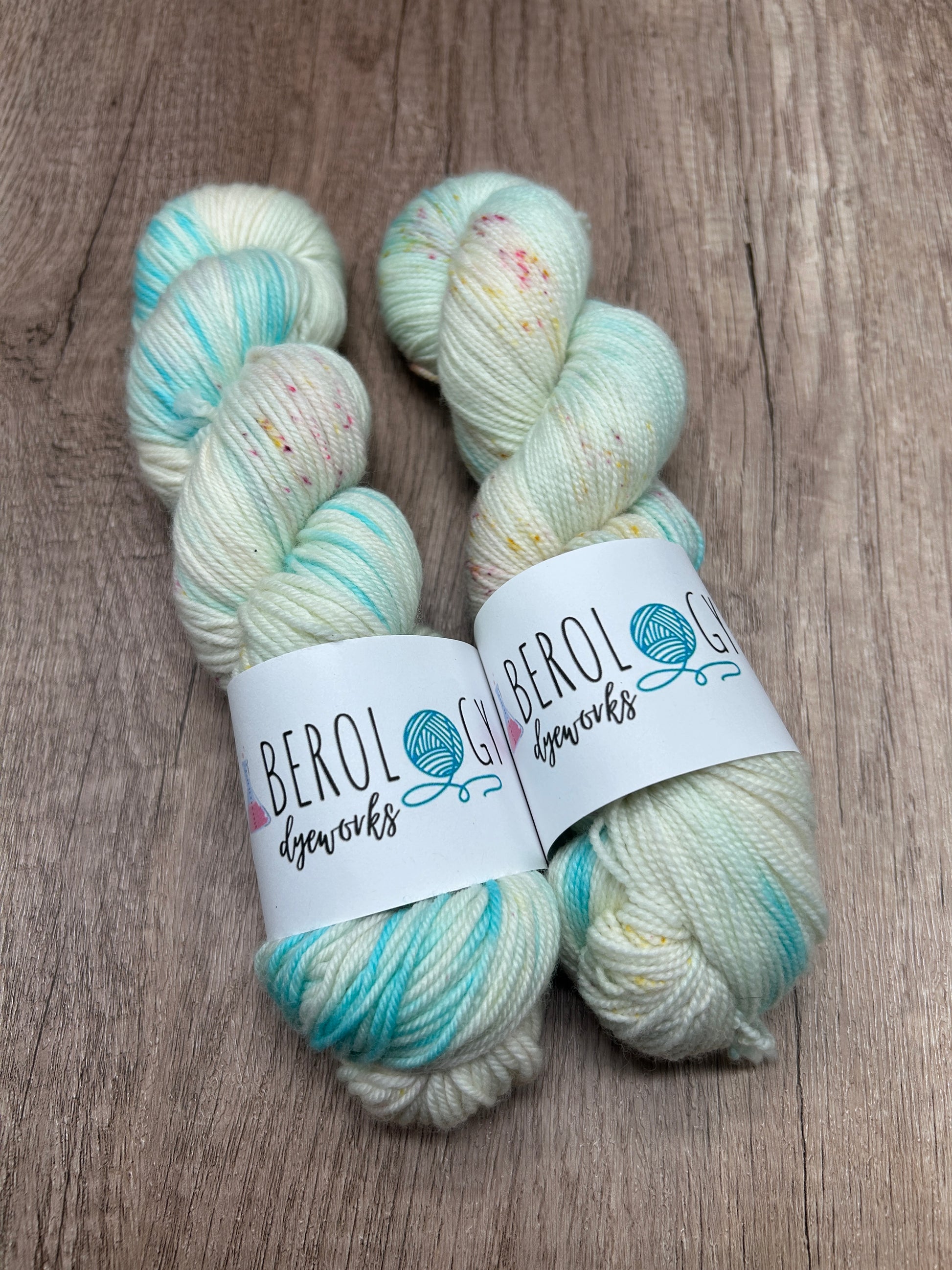 Additional skeins of fingering, 400 yards of 80% superwash merino & 20% nylon, or DK, 246 yards of 100% superwash merino, are $29.50.